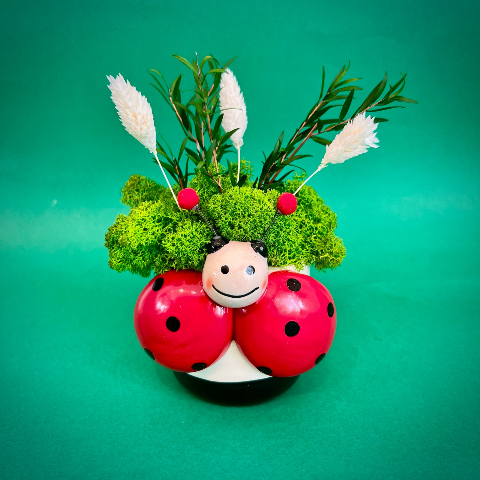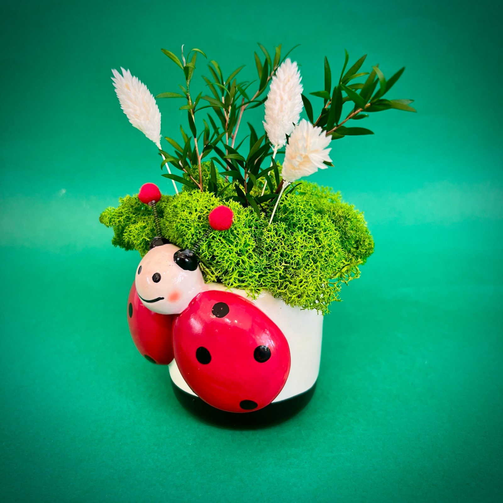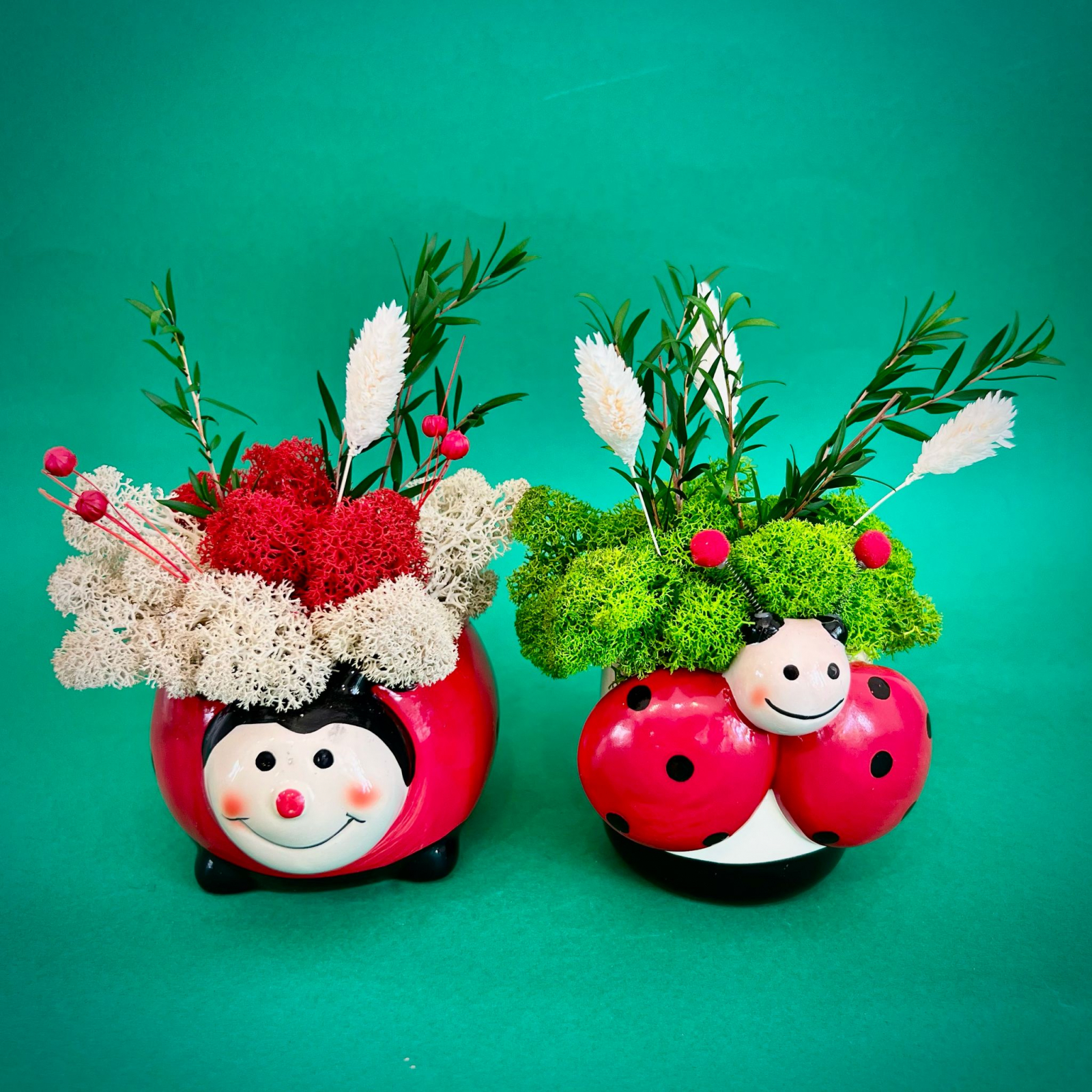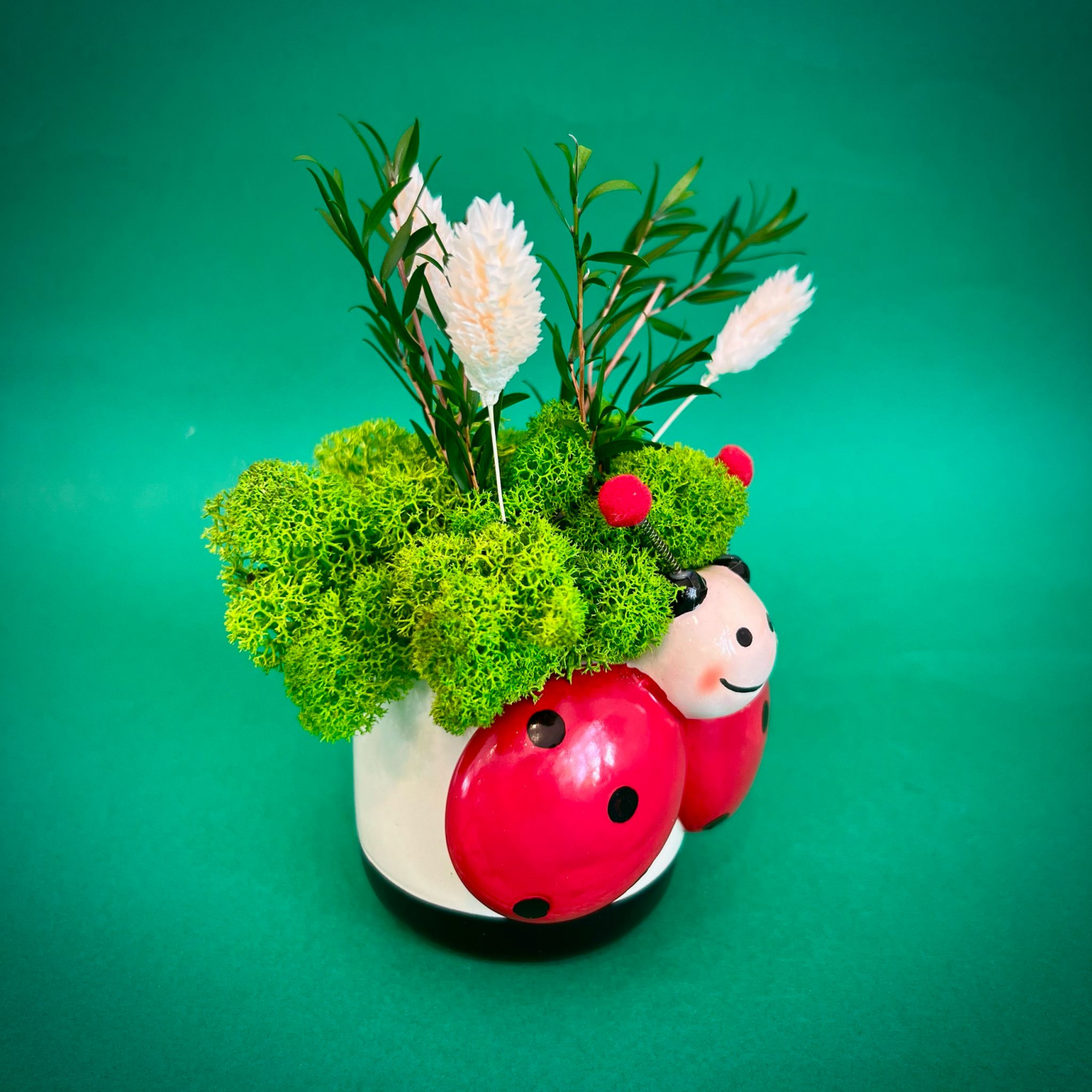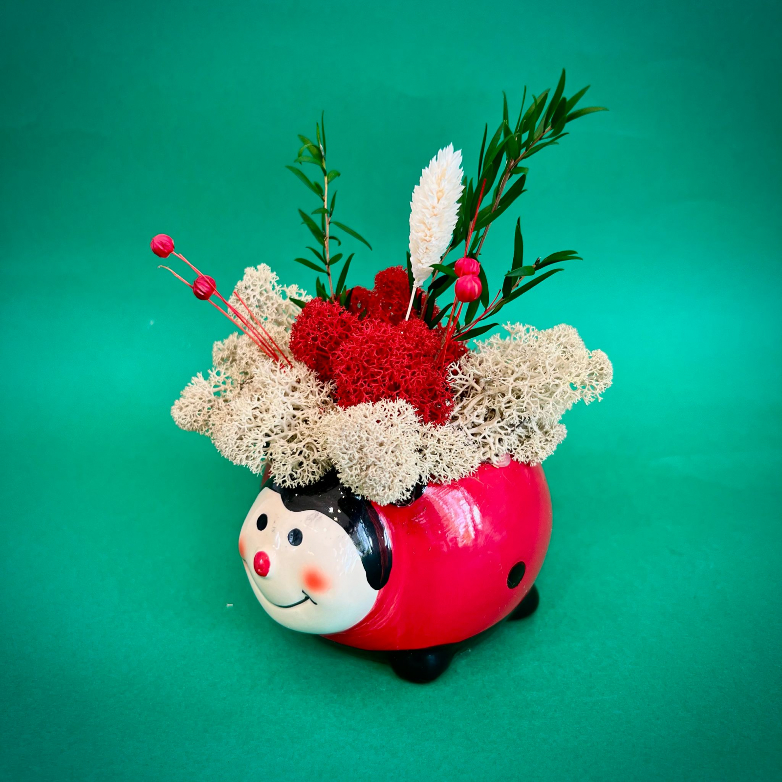 Aranjamentul este format din licheni stabilizati, plante stabilizate si uscate.