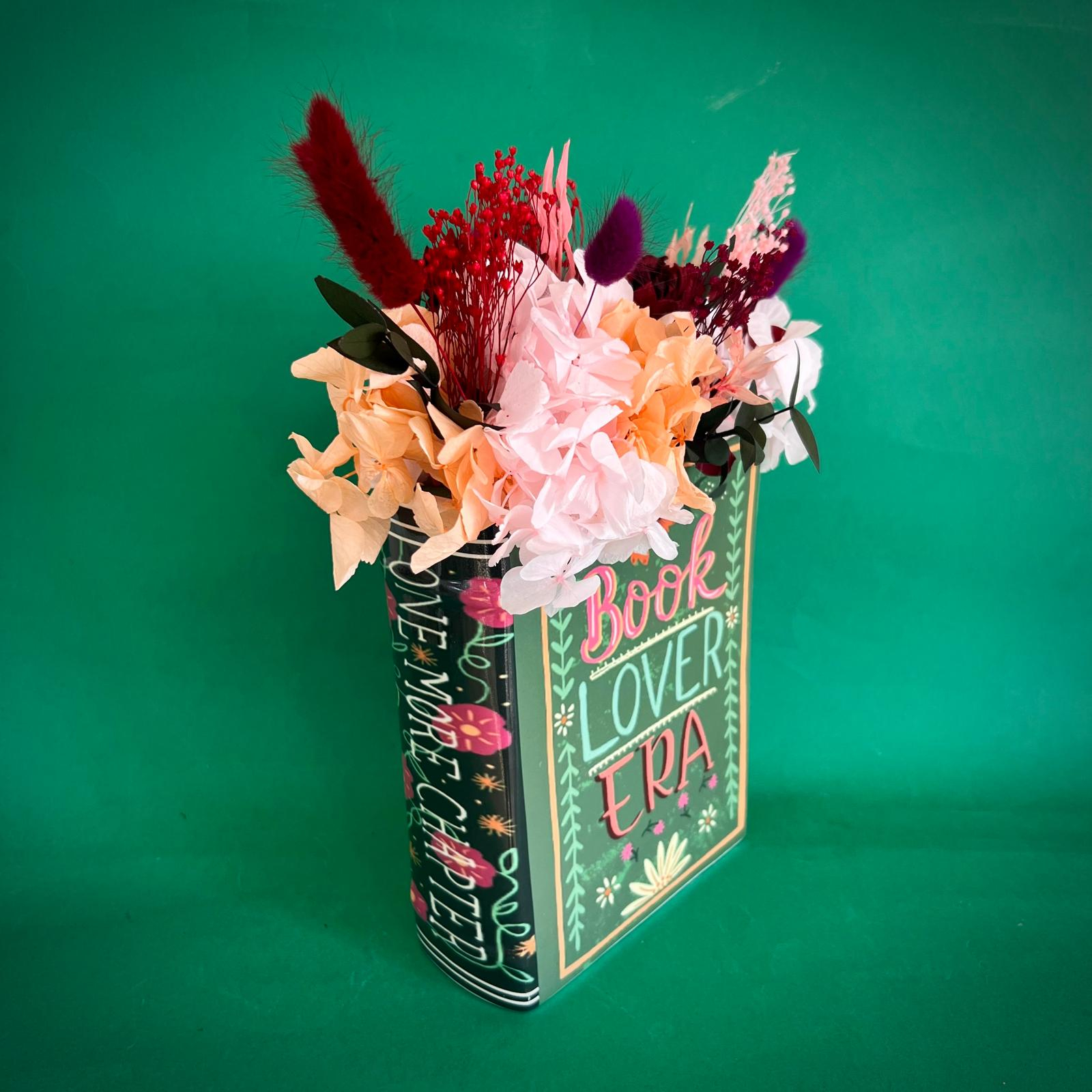 Aranjamentul este format din licheni, flori si plante naturale si stabilizate sau uscate.