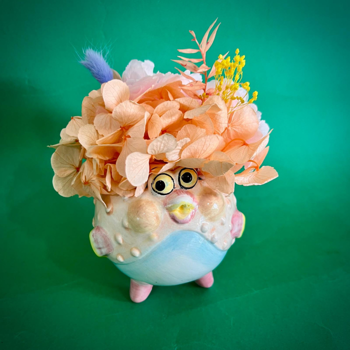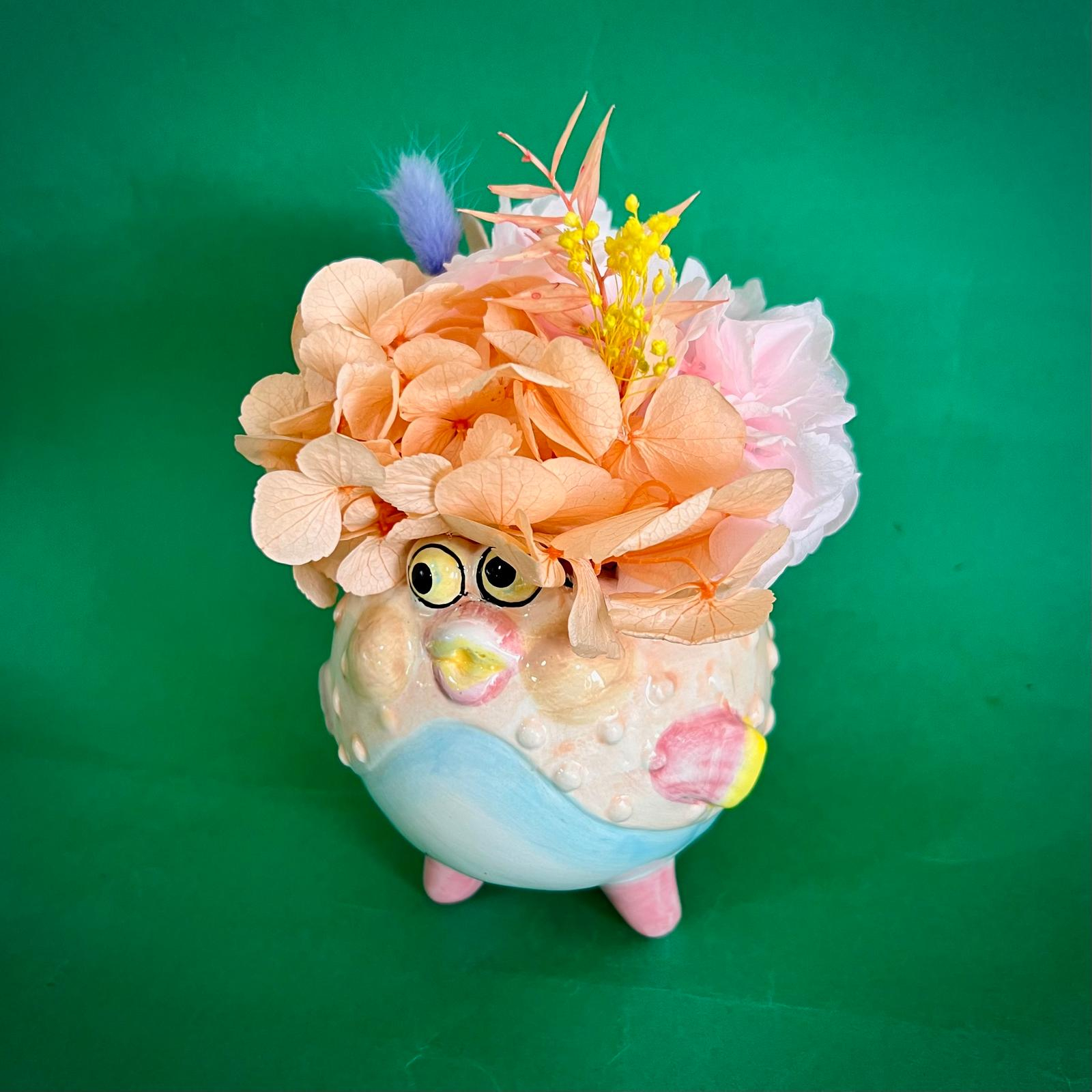 Aranjamentul este format din flori si plante naturale si stabilizate sau uscate.