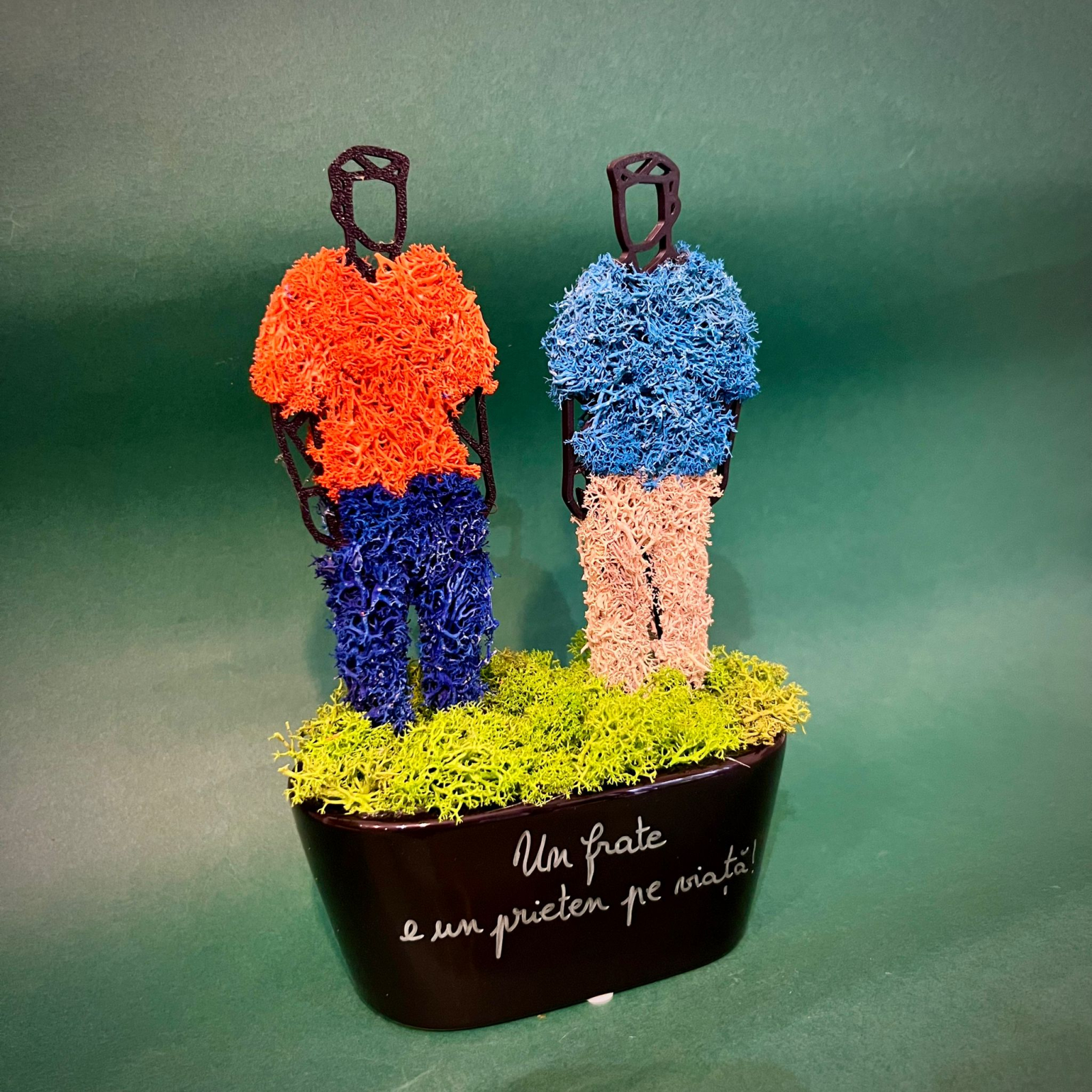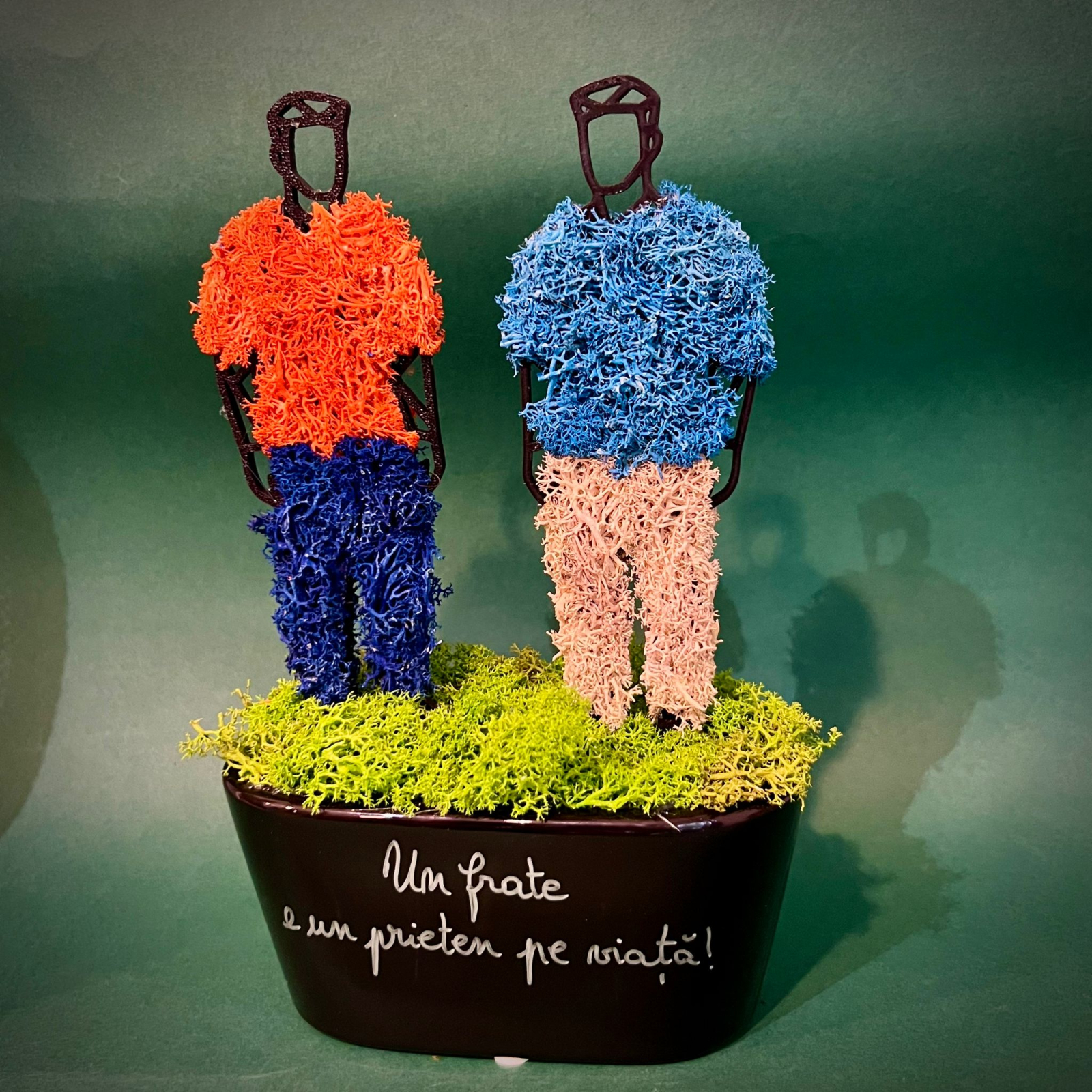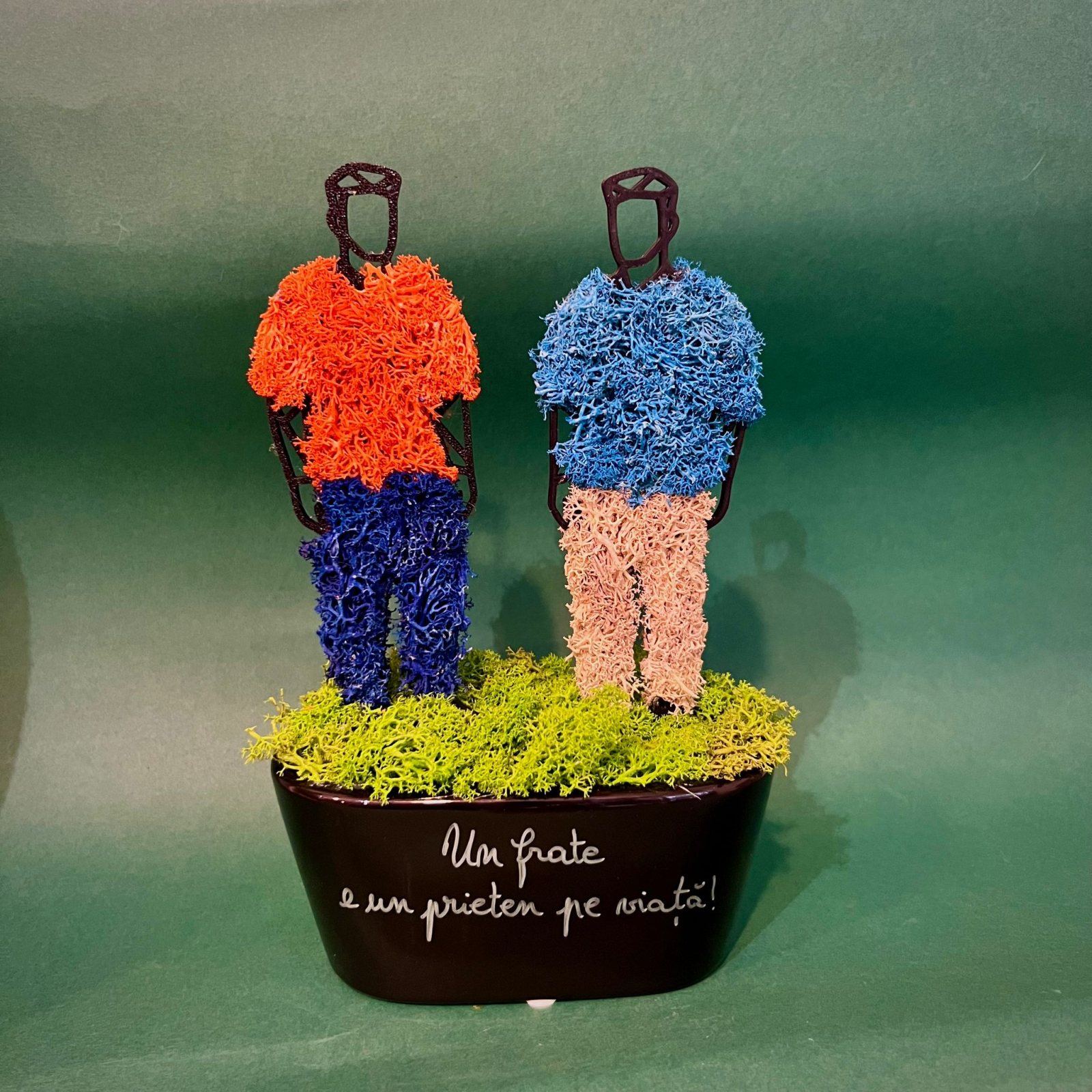 Aranjamentul floral va surprinde persoana draga pentru o perioada de timp indelungata. Aranjamentul este format din licheni stabilizati aranjati intr-un vas de ceramica.